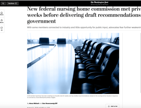 I was a contributing reporter to this investigation on nursing homes during the coronavirus pandemic. https://www.washingtonpost.com/business/2020/08/04/nursing-home-companies-accused-misusing-federal-money-received-hundreds-millions-dollars-pandemic-relief/ https://www.washingtonpost.com/business/2020/04/17/nursing-home-coronavirus-deaths/?arc404=true https://www.washingtonpost.com/investigations/number-of-nursing-homes-with-publicly-reported-cases-of-the-coronavirus-soars/2020/04/29/7375941c-898c-11ea-ac8a-fe9b8088e101_story.html